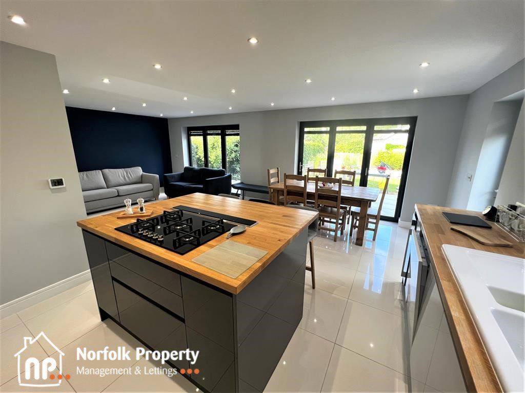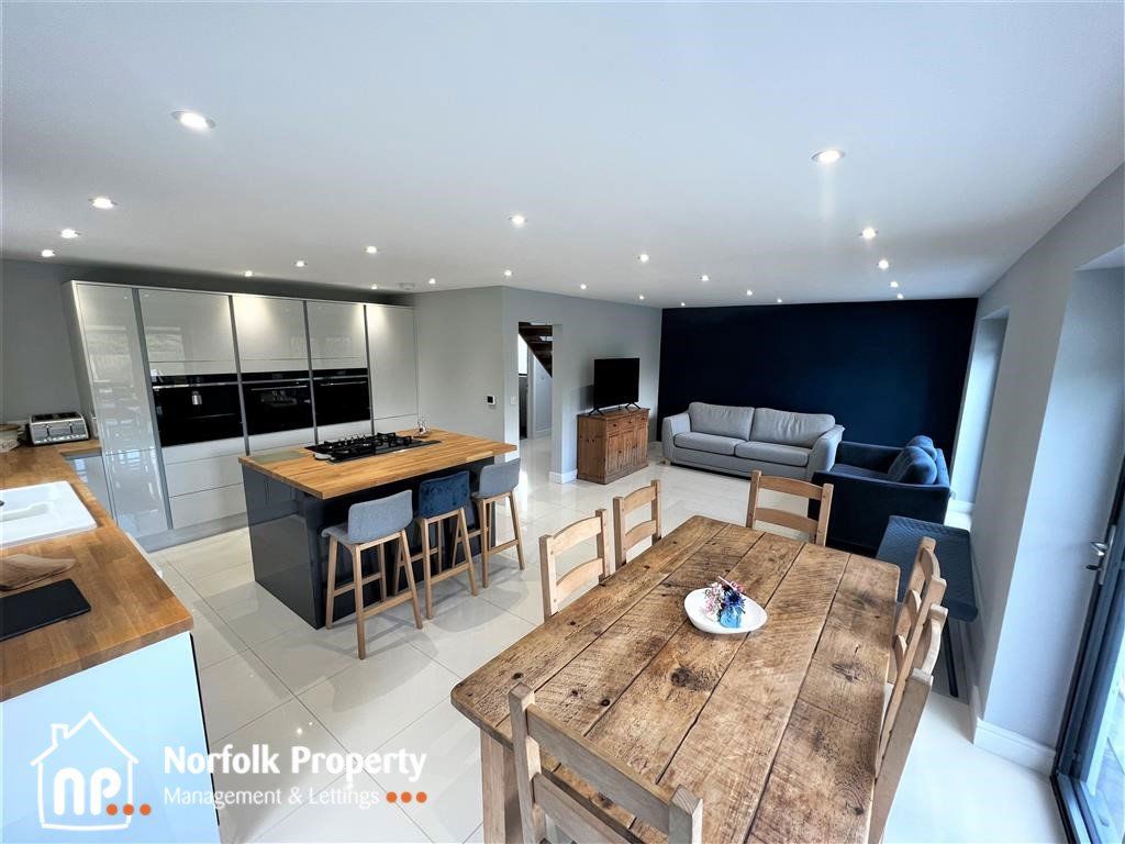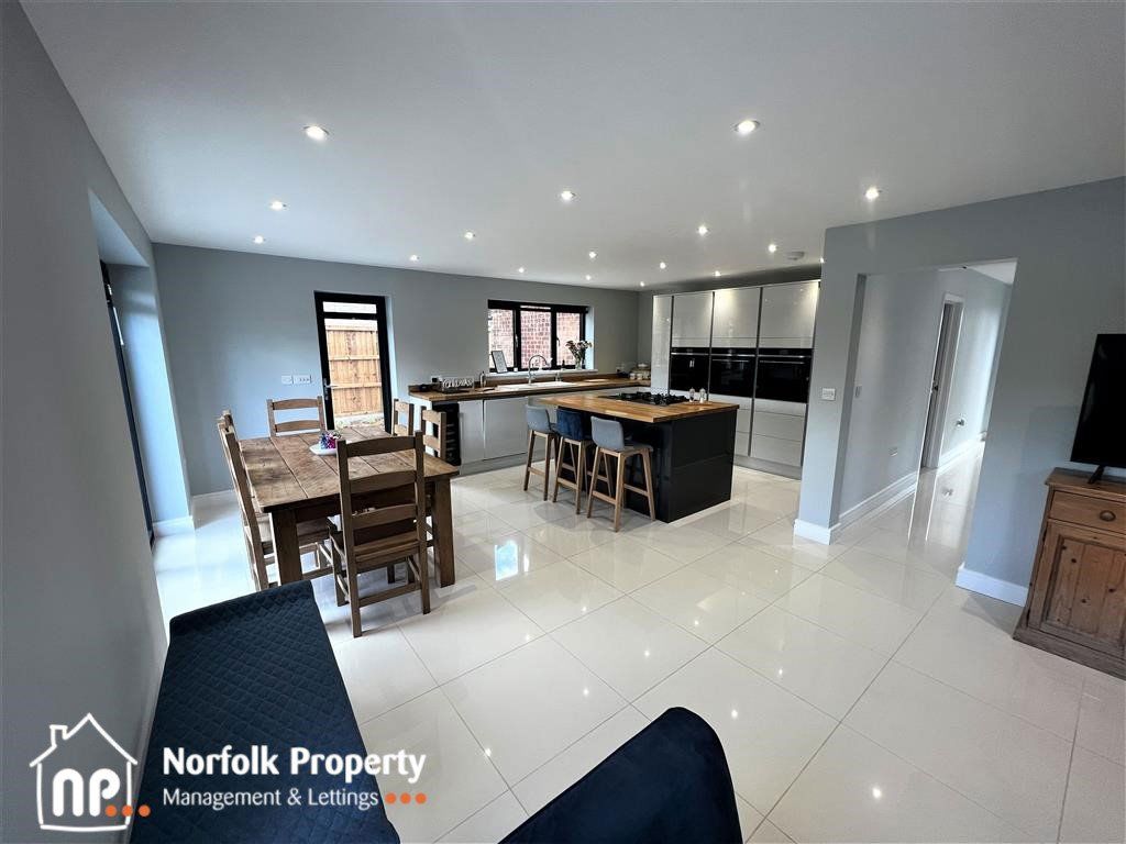 Set in this quiet cul-de-sac position in Cringleford is this impressive Detached Family home. The present owners have renovated to a very high standard incorporating high tech facilities. The kitchen family room is stunning with views over the rear garden accessed by the double bifold doors, a smaller snug, Utility room, and wet room downstairs. On the first floor are four double bedrooms, two with en-suit facilities and a large family bathroom with walk in shower. Full gas heating, Full double glazing, single garage, and enclosed rear garden. The property is available on a 12-month tenancy and is Council Tax band E.
